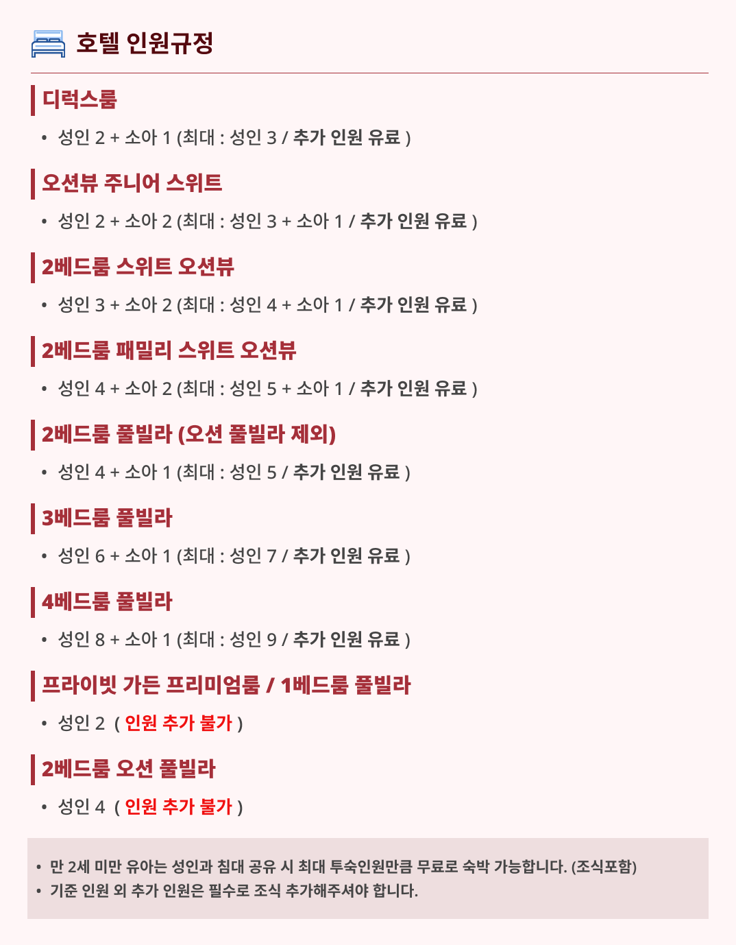 | [üũÀÎ 15:00 / üũ¾Æ¿ô 11:00] ¡Úº¯°æ, Ãë¼Ò ±ÔÁ¤ ¾È³»¡Ú ¤ý¸ðµç È£ÅÚ ¿¹¾àÀÇ Ãë¼Ò ¹× º¯°æÀº º£Æ®³²½ºÅ丮¸¦ ÅëÇØ¼¸¸ ÀÌ·ç¾îÁ®¾ß ÇÏ¸ç ±Ù¹«½Ã°£¿Ü¿¡ Á¢¼öµÈ °Ç¿¡ ´ëÇØ¼´Â ¡¡´ÙÀ½ ±Ù¹« ÀÏÀÚ¿¡ Á¢¼öµÈ °ÍÀ¸·Î °£Áֵǰí 󸮵˴ϴÙ. (»ó´ã°Ô½ÃÆÇ ÀÌ¿ë) ¤ýÃë¼Ò´Â °¢ È£ÅÚ ±ÔÁ¤À» µû¸£¸ç Á¤È®ÇÑ Ãë¼Ò ÀÏÀÚ ¹× ÆÐ³ÎƼ´Â °´½ÇÀÌ È®Á¤µÇ¾úÀ» ¶§ ¾Ë ¼ö ÀÖ½À´Ï´Ù. ¤ý¿¹¾à ½Ã ¹Ì¸® ÆÐ³ÎƼ¸¦ ¾È³»Çصå·È¾îµµ, ÇöÁö »çÁ¤/Çà»ç µî¿¡ ÀÇÇØ ÆÐ³ÎƼ ±ÔÁ¤ÀÌ º¯µ¿µÉ ¼ö ÀÖÀ¸´Ï ¾çÇØ ºÎʵ右´Ï´Ù. ¡ß LOW SEASON : üũÀÎ 20ÀÏ Àü±îÁö ¹«·á º¯°æ,Ãë¼Ò 2025³â: 11¿ù 1ÀÏ - 12¿ù 21ÀÏ 2026³â: 1¿ù 5ÀÏ - 2¿ù 17ÀÏ / 2¿ù 22ÀÏ - 5¿ù 31ÀÏ / 9¿ù 1ÀÏ - 10¿ù 31ÀÏ ¡ß HIGH SEASON : üũÀÎ 25ÀÏ Àü±îÁö ¹«·á º¯°æ,Ãë¼Ò 2026³â: 6¿ù 1ÀÏ - 8¿ù 31ÀÏ ¡ß PEAK SEASON : üũÀÎ 50ÀÏ Àü±îÁö ¹«·á º¯°æ,Ãë¼Ò 2025³â: 12¿ù 22ÀÏ - 12¿ù 31ÀÏ 2026³â: 1¿ù 1ÀÏ - 1¿ù 4ÀÏ / 2¿ù 18ÀÏ - 2¿ù 21ÀÏ ¡Ø ¹«·á º¯°æ, Ãë¼Ò ±â°£ ÀÌÈķδ ¸ðµç º¯°æ ¹× Ãë¼Ò°¡ ºÒ°¡ÇÕ´Ï´Ù. ¡Ø Ãë¼Ò º¯°æ ºÒ°¡ ÇÁ·Î¸ð¼ÇÀÌ Àû¿ëµÇ¾úÀ» °æ¿ì ºÒ°¡´ÉÇÕ´Ï´Ù. ¡Ø ÈÞÀÏ ¹× ÆòÀÏ »ç¹«½Ç ¾÷¹«Á¾·á ÈÄ Ãë¼Ò´Â Ãâ¹ßÀÏ ±âÁØ¿¡¼ Á¦¿ÜµË´Ï´Ù. [¿¹¾à ½Ã À¯ÀÇ»çÇ×] 1. ¿¹¾à ¿äû ¤ý¼¼±Ý ¹× ºÀ»ç·á Æ÷ÇÔÇÑ ÃÑ °áÁ¦ ±Ý¾×ÀÔ´Ï´Ù. ¤ýÁ¶½Ä ºÒÆ÷ÇÔ À̶ó´Â º°µµ Ç¥½Ã°¡ ¾ø´Â ÇÑ ¸ðµç °´½ÇÀº °´½Ç ´ç ±âÁØÀοø¿¡ ´ëÇÑ Á¶½Ä Æ÷ÇÔ ¿ä±ÝÀÔ´Ï´Ù. ¤ýµ¿ÀÏÇÑ À̸§À¸·Î °°Àº ³¯Â¥¿¡ ¿©·¯ È£ÅÚ¿¡ ¿¹¾àÀ» ³Ö´Â °æ¿ì ¿¹¾à È¥¼±ÀÌ ¾ß±âµÉ ¼ö ÀÖ½À´Ï´Ù. ¤ý¼÷¹Ú½Ã¼³ÀÌ ±ÔÁ¤ÇÏ´Â ±ÔÄ¢°ú ¾à°üÀ» ÁؼöÇØ¾ß ÇÕ´Ï´Ù. ¤ýº£µåŸÀÔÀº È®Á¤»çÇ×ÀÌ ¾Æ´Õ´Ï´Ù. 2. ¿¹¾à È®Á¤ ¤ýÈ£ÅÚ ¿¹¾à ÈÄ ¿µ¾÷ÀÏ ±âÁØ 24½Ã°£ À̳» ¹®ÀÚ·Î °´½Ç È®Á¤ ¿©ºÎ¸¦ ¾Ë·Áµå¸³´Ï´Ù. ¤ýº£Æ®³² ½ºÅ丮´Â Ư°¡°´½Ç ¿î¿µÀ» À§ÇØ È£ÅÚ È¤Àº ÇØ¿Ü ¿¡ÀÌÀü½Ã¿Í Á÷°Å·¡¸¦ Çϱ⠶§¹®¿¡ ¿©Çà»ç °ø½Ä °èÁ ¼Û±Ý¸¸ °¡´ÉÇÕ´Ï´Ù. ¾çÇØ¹Ù¶ø´Ï´Ù. ¡¡°´½Ç È®Á¤ °íÁö ÈÄ °áÁ¦½ÃÇÑ À̳» °áÁ¦°¡ ÀÌ·ç¾îÁöÁö ¾ÊÀ¸¸é ¿¹¾àÀº °íÁö ¾øÀÌ ÀÚµ¿ Ãë¼ÒµË´Ï´Ù. ¤ý°áÁ¦´Â ¿©Çà»ç °ø½Ä °èÁ·ΠȣÅÚ ¿¹¾àÀÚ ¸íÀÇ·Î ¼Û±Ý ÇØÁÖ¼Å¾ß ÇÕ´Ï´Ù. ŸÀÎ ¸íÀÇ·Î ¼Û±Ý ½Ã ÀüÈ ¹®Àǹٶø´Ï´Ù. 3. ¿¹¾àÈ®Á¤¼(¹Ù¿ìó) ¹ß±Þ ¤ýº£Æ®³²½ºÅ丮 È£ÅÚ ¿¹¾àÁ¶°ÇÀº °´½Ç È®Á¤ ÈÄ ¹Ýµå½Ã Ãâ¹ß Àü °´½Ç·á¸¦ ÁöºÒÇØ¾ß ÇÏ´Â "¼± ÁöºÒ¹æ½Ä"À̸ç, ¡¡°áÁ¦¿Ï·á ÈÄ ¹Ýµå½Ã ¼÷¹Ú±Ç(¹Ù¿ìó)¸¦ Ãâ·ÂÇϼż üũÀÎ ½Ã ÇÁ·ÐÆ®¿¡ Á¦½ÃÇØ¾ßÇÕ´Ï´Ù. ¡¡¼÷¹Ú±ÇÀº ÃÖ´ë ¿µ¾÷ÀÏ ±âÁØ 5ÀÏ À̳» ¸ÞÀÏ·Î ¹ß¼ÛÇØµå¸³´Ï´Ù. 4. ¿¹¾à Ãë¼Ò ¹× No-show ¤ýº£Æ®³²½ºÅ丮´Â °í°´´ÔÀÇ No-show ¹× Go-show ¿¡ ´ëÇØ ÀÏüÀÇ Ã¥ÀÓÀ» ÁöÁö ¾Ê»ç¿À´Ï, »çÀü¿¡ ¿¹¾àÈ®Á¤ ¹× ¡¡½ÇÁ¦ Åõ¼÷ ¿©ºÎ¸¦ Á¤È®ÇÏ°Ô È®ÀÎÇϼż ÇöÁö¿¡¼ ºÒÀÌÀÍÀ» ´çÇÏÁö ¾Êµµ·Ï ÁÖÀÇÇϽñ⠹ٶø´Ï´Ù. ¡¡No-show : ¿¹¾àÈ®Á¤À» ¹ÞÀº µÚ ¿¹¾àµÈ ³¯Â¥¿¡ °í°´ÀÌ È£ÅÚ¿¡ Åõ¼÷ÇÏÁö ¾Ê´Â °æ¿ì(¿¹¾àºÎµµ) ¡¡Go-show : ¿¹¾à¸¸ ÇÏ°í ¿¹¾àÈ®Á¤À» ¹ÞÁö ¸øÇÑ »óÅ¿¡¼ È£ÅÚ Åõ¼÷À» À§ÇØ ÇöÁöÈ£ÅÚ¿¡¼ ´ë±âÇÏ´Â °æ¿ì ¤ýÀ¥»çÀÌÆ®ÀÇ È£ÅÚÁ¤º¸´Â È£ÅÚ¿¹¾àÀ» À§ÇÑ Âü°í ÀÚ·á·Î È£ÅÚ ³» ÀÚü º¯µ¿À̳ª ±âŸ »çÀ¯·Î ½ÇÁ¦¿Í Â÷À̰¡ ÀÖÀ» ¼ö ÀÖÀ¸¸ç, ¡¡ÀÌ¿¡ ´ëÇØ º£Æ®³²½ºÅ丮´Â Ã¥ÀÓÀ» ÁöÁö ¾ÊÀ½À» ¾çÁöÇϽñ⠹ٶø´Ï´Ù. ¤ý°´½Ç¹èÁ¤¿¡ µû¸¥ ¿äû»çÇ×(±Ý¿¬·ë, °íÃþ µî)Àº È£ÅÚ¿¡ Àü´ÞµÇ³ª, ½ÇÁ¦ ¿î¿µÇϴ ȣÅÚÀÇ »çÁ¤¿¡ µû¶ó °áÁ¤µÇ´Â »ç¾ÈÀ¸·Î ¡¡º£Æ®³²½ºÅ丮¿¡¼ º¸Àå ÇÒ ¼ö ÀÖ´Â »çÇ×ÀÌ ¾Æ´ÔÀ» ¾Ë·Áµå¸³´Ï´Ù. ¤ýÀüü Åõ¼÷°´¼ö°¡ ÃÖ´ë ¼ö¿ëÀοøÀ» ÃʰúÇØ¼´Â ¾È µÇ¸ç, ¸¸¾à ±ÔÁ¤À» ¾î±â¸é µµÂø ½Ã ¡¡¼÷¹ÚÀ» °ÅÀý´çÇϰųª Ãß°¡¿ä±ÝÀ» ³»¾ß ÇÒ ¼öµµ ÀÖ½À´Ï´Ù. ¤ýÃë¼Ò¸¶°¨ÀÏ »êÁ¤Àº Åä¿äÀÏ, ÀÏ¿äÀÏ, °øÈÞÀÏÀ» Á¦¿ÜÇϰí, °æ¿ì¿¡ µû¶ó º°µµÀÇ Ãë¼Ò¸¶°¨ÀÏÀÌ ¡¡Àû¿ëµÉ ¼ö ÀÖ½À´Ï´Ù. (Çà»ç ȤÀº È£ÅÚ ÃøÀÇ Æ¯º°±ÔÁ¤À» µû¸¨´Ï´Ù) |