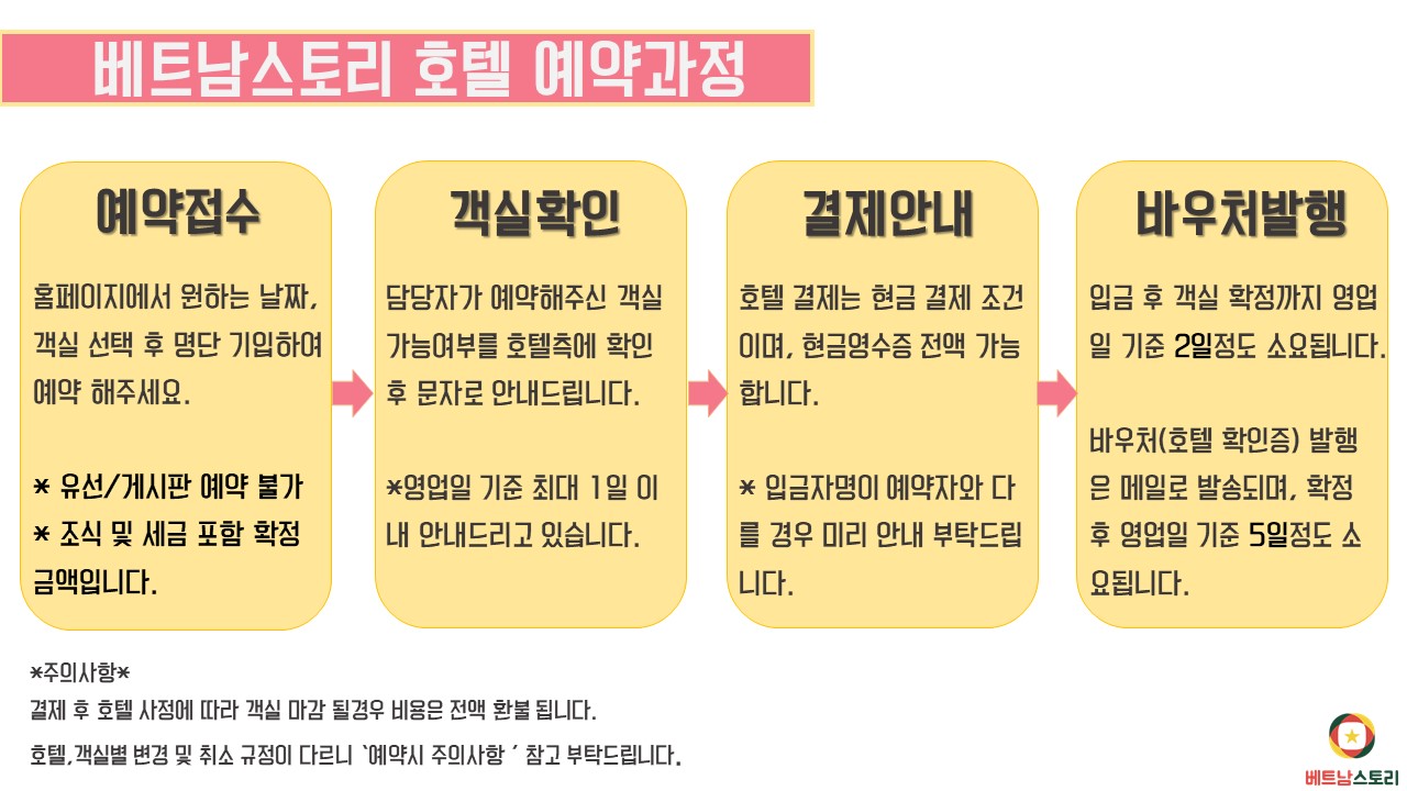 | [üũÀÎ 14:00 / üũ¾Æ¿ô 12:00] [À¯/¾Æµ¿ Á¤Ã¥] ƯÀü»çÇ× Âü°í [¿¹¾à ½Ã À¯ÀÇ»çÇ×] 1. ¿¹¾à ¿äû ¤ý¼¼±Ý ¹× ºÀ»ç·á Æ÷ÇÔÇÑ ÃÑ °áÁ¦ ±Ý¾×ÀÔ´Ï´Ù. ¤ýÁ¶½Ä ºÒÆ÷ÇÔ À̶ó´Â º°µµ Ç¥½Ã°¡ ¾ø´Â ÇÑ ¸ðµç °´½ÇÀº Á¶½Ä Æ÷ÇÔ ¿ä±ÝÀÔ´Ï´Ù. ¤ýµ¿ÀÏÇÑ À̸§À¸·Î °°Àº ³¯Â¥¿¡ ¿©·¯ È£ÅÚ¿¡ ¿¹¾àÀ» ³Ö´Â °æ¿ì ¿¹¾à È¥¼±ÀÌ ¾ß±âµÉ ¼ö ÀÖ½À´Ï´Ù. ¤ý¼÷¹Ú½Ã¼³ÀÌ ±ÔÁ¤ÇÏ´Â ±ÔÄ¢°ú ¾à°üÀ» ÁؼöÇØ¾ß ÇÕ´Ï´Ù. ¤ýº£µåŸÀÔÀº È®Á¤»çÇ×ÀÌ ¾Æ´Õ´Ï´Ù. 2. ¿¹¾à È®Á¤ ¤ýÈ£ÅÚ ¿¹¾à ÈÄ 24½Ã°£ À̳» °´½Ç È®Á¤ ¿©ºÎ¸¦ ¾Ë·Áµå¸³´Ï´Ù. ¤ýº£Æ®³² ½ºÅ丮´Â Ư°¡°´½Ç ¿î¿µÀ» À§ÇØ È£ÅÚ È¤Àº ÇØ¿Ü ¿¡ÀÌÀü½Ã¿Í Á÷°Å·¡¸¦ Çϱ⠶§¹®¿¡ ¿©Çà»ç °ø½Ä °èÁ ¼Û±Ý¸¸ °¡´ÉÇÕ´Ï´Ù. ¾çÇØ¹Ù¶ø´Ï´Ù. ¡¡°´½Ç È®Á¤ °íÁö ÈÄ 24½Ã°£ À̳» °áÁ¦°¡ ÀÌ·ç¾îÁöÁö ¾ÊÀ¸¸é ¿¹¾àÀº °íÁö ¾øÀÌ ÀÚµ¿ Ãë¼ÒµË´Ï´Ù. ¤ý°áÁ¦´Â ¿©Çà»ç °ø½Ä °èÁ·ΠȣÅÚ ¿¹¾àÀÚ ¸íÀÇ·Î ¼Û±Ý ÇØÁÖ¼Å¾ß ÇÕ´Ï´Ù. ŸÀÎ ¸íÀÇ·Î ¼Û±Ý ½Ã ÀüÈ ¹®Àǹٶø´Ï´Ù. 3. ¿¹¾àÈ®Á¤¼ ¹ß±Þ ¤ýº£Æ®³²½ºÅ丮 È£ÅÚ ¿¹¾àÁ¶°ÇÀº °´½Ç È®Á¤ ÈÄ ¹Ýµå½Ã Ãâ¹ß Àü °´½Ç·á¸¦ ÁöºÒÇØ¾ß ÇÏ´Â "¼± ÁöºÒ¹æ½Ä"À̸ç, ¡¡°áÁ¦¿Ï·á ÈÄ ¹Ýµå½Ã ¼÷¹Ú±Ç(¹Ù¿ìó)¸¦ Ãâ·ÂÇϼż üũÀÎ ½Ã ÇÁ·ÐÆ®¿¡ Á¦½ÃÇØ¾ßÇÕ´Ï´Ù. ¡¡¼÷¹Ú±ÇÀº Åõ¼÷ÀÏ ±âÁØ ÃÖ¼Ò 7ÀÏ Àü¿¡ Ä«ÅåÀ¸·Î º¸³»µå¸³´Ï´Ù. 4. ¿¹¾à Ãë¼Ò ¹× No-show ¤ýº£Æ®³²½ºÅ丮´Â °í°´´ÔÀÇ No-show ¹× Go-show ¿¡ ´ëÇØ ÀÏüÀÇ Ã¥ÀÓÀ» ÁöÁö ¾Ê»ç¿À´Ï, »çÀü¿¡ ¿¹¾àÈ®Á¤ ¹× ¡¡½ÇÁ¦ Åõ¼÷ ¿©ºÎ¸¦ Á¤È®ÇÏ°Ô È®ÀÎÇϼż ÇöÁö¿¡¼ ºÒÀÌÀÍÀ» ´çÇÏÁö ¾Êµµ·Ï ÁÖÀÇÇϽñ⠹ٶø´Ï´Ù. ¡¡No-show : ¿¹¾àÈ®Á¤À» ¹ÞÀº µÚ ¿¹¾àµÈ ³¯Â¥¿¡ °í°´ÀÌ È£ÅÚ¿¡ Åõ¼÷ÇÏÁö ¾Ê´Â °æ¿ì(¿¹¾àºÎµµ) ¡¡Go-show : ¿¹¾à¸¸ ÇÏ°í ¿¹¾àÈ®Á¤À» ¹ÞÁö ¸øÇÑ »óÅ¿¡¼ È£ÅÚ Åõ¼÷À» À§ÇØ ÇöÁöÈ£ÅÚ¿¡¼ ´ë±âÇÏ´Â °æ¿ì ¤ýÀ¥»çÀÌÆ®ÀÇ È£ÅÚÁ¤º¸´Â È£ÅÚ¿¹¾àÀ» À§ÇÑ Âü°í ÀÚ·á·Î È£ÅÚ ³» ÀÚü º¯µ¿À̳ª ±âŸ »çÀ¯·Î ½ÇÁ¦¿Í Â÷À̰¡ ÀÖÀ» ¼ö ÀÖÀ¸¸ç, ¡¡ÀÌ¿¡ ´ëÇØ º£Æ®³²½ºÅ丮´Â Ã¥ÀÓÀ» ÁöÁö ¾ÊÀ½À» ¾çÁöÇϽñ⠹ٶø´Ï´Ù. ¤ý°´½Ç¹èÁ¤¿¡ µû¸¥ ¿äû»çÇ×(±Ý¿¬·ë, °íÃþ µî)Àº È£ÅÚ¿¡ Àü´ÞµÇ³ª, ½ÇÁ¦ ¿î¿µÇϴ ȣÅÚÀÇ »çÁ¤¿¡ µû¶ó °áÁ¤µÇ´Â »ç¾ÈÀ¸·Î ¡¡º£Æ®³²½ºÅ丮¿¡¼ º¸Àå ÇÒ ¼ö ÀÖ´Â »çÇ×ÀÌ ¾Æ´ÔÀ» ¾Ë·Áµå¸³´Ï´Ù. ¤ýÀüü Åõ¼÷°´¼ö°¡ ÃÖ´ë ¼ö¿ëÀοøÀ» ÃʰúÇØ¼´Â ¾È µÇ¸ç, ¸¸¾à ±ÔÁ¤À» ¾î±â¸é µµÂø ½Ã ¡¡¼÷¹ÚÀ» °ÅÀý´çÇϰųª Ãß°¡¿ä±ÝÀ» ³»¾ß ÇÒ ¼öµµ ÀÖ½À´Ï´Ù. ¤ýÃë¼Ò¸¶°¨ÀÏ »êÁ¤Àº Åä¿äÀÏ, ÀÏ¿äÀÏ, °øÈÞÀÏÀ» Á¦¿ÜÇϰí, °æ¿ì¿¡ µû¶ó º°µµÀÇ Ãë¼Ò¸¶°¨ÀÏÀÌ ¡¡Àû¿ëµÉ ¼ö ÀÖ½À´Ï´Ù. (Çà»ç ȤÀº È£ÅÚ ÃøÀÇ Æ¯º°±ÔÁ¤À» µû¸¨´Ï´Ù) [Ãë¼Ò ±ÔÁ¤ ¾È³»] ¤ý¸ðµç È£ÅÚ ¿¹¾àÀÇ Ãë¼Ò ¹× º¯°æÀº º£Æ®³²½ºÅ丮¸¦ ÅëÇØ¼¸¸ ÀÌ·ç¾îÁ®¾ß ÇÏ¸ç ±Ù¹«½Ã°£¿Ü¿¡ Á¢¼öµÈ °Ç¿¡ ´ëÇØ¼´Â ¡¡´ÙÀ½ ±Ù¹« ÀÏÀÚ¿¡ Á¢¼öµÈ °ÍÀ¸·Î °£Áֵǰí 󸮵˴ϴÙ. (ÀüÈ, »ó´ã°Ô½ÃÆÇ ÀÌ¿ë) ¤ýÃë¼Ò´Â °¢ È£ÅÚ ±ÔÁ¤À» µû¸£¸ç Á¤È®ÇÑ Ãë¼Ò ÀÏÀÚ ¹× ÆÐ³ÎƼ´Â °´½ÇÀÌ È®Á¤µÇ¾úÀ» ¶§ ¾Ë ¼ö ÀÖ½À´Ï´Ù. ¤ý¿¹¾à ½Ã ¹Ì¸® ÆÐ³ÎƼ¸¦ ¾È³»Çصå·È¾îµµ, ÇöÁö »çÁ¤/Çà»ç µî¿¡ ÀÇÇØ ÆÐ³ÎƼ ±ÔÁ¤ÀÌ º¯µ¿µÉ ¼ö ÀÖÀ¸´Ï ¾çÇØ ºÎʵ右´Ï´Ù. ÇÁ·Î¸ð¼Ç °´½Ç = Ãë¼Ò º¯°æ ºÒ°¡ ¡¡¶ÇÇÑ È£ÅÚ ÀÚüÀÇ À̺¥Æ®³ª Çà»ç ÇÒÀÎ ¿ä±Ý µî °áÁ¦ ÈÄ ±âŸ »çÀ¯·Î ÀÎÇÑ Â÷¾×¿¡ ´ëÇØ¼± ȯºÒÀ» ¿ä±¸ÇÏ½Ç ¼ö ¾ø½À´Ï´Ù. ¡¡Full Guarantee : ÀüüÀÏÁ¤¿¡ ´ëÇÑ ¼ö¼ö·á·Î ºÎ°úµË´Ï´Ù. ¡¡´çÀÏÃë¼Ò ¶Ç´Â No-Show : ÀüüÀÏÁ¤¿¡ ´ëÇÑ ¼ö¼ö·á·Î ºÎ°úµË´Ï´Ù. [º£Æ®³²½ºÅ丮´Â..] ¤ýº£Æ®³²½ºÅ丮´Â ¿¹¾à´ëÇà»ç·Î¼ õÀçÁöº¯, È£ÅÚÀÇ ÆÄ¾÷, Ç×°ø»ç»çÁ¤, ³»¶õ µî ±¹Á¦ ¿©Çà¾÷ °üÇà»ó¿¡ ÀÎÁ¤µÇÁö ¾Ê´Â »çÀ¯·Î ¡¡ÀÎÇØ ¹ß»ýµÇ´Â º¯°æ ¹× üũÀÎ ÈÄ È£ÅÚ³»ÀÇ ÈÀç/µµ³, È£ÅÚÃøÀÇ Ãʰú ¼÷¹Ú ¿¹¾àÀ¸·Î ÀÎÇÑ È£ÅÚ º¯°æ µî Á÷°£Á¢ÀûÀ¸·Î ¡¡¹ß»ýµÇ´Â Àǹ«¼öÇàÀÇ Áö¿¬ ¶Ç´Â ºÒÀÌÇà¿¡ ´ëÇÑ ¿ø¸¸ÇÑ ÇØ°áÀ» À§ÇØ ÃÖ´ëÇÑ ³ë·ÂÀ» ´ÙÇØµå¸®³ª ¹è»óÀÇ Ã¥ÀÓÀ» ÁöÁö ¾Ê½À´Ï´Ù. ¤ýº£Æ®³²½ºÅ丮´Â ¾ÈÀüÇÏ°í ½Å·Ú¼º ÀÖ´Â ÀüÀÚ »ó°Å·¡¿Í º¸¾È ¼ºñ½º¸¦ Á¦°øÇØ µå¸®°í ÀÖÀ¸´Ï ¾È½ÉÇÏ°í °áÁ¦ ¼ºñ½º¸¦ ¡¡ÀÌ¿ëÇϽñ⠹ٶø´Ï´Ù. ¤ýº£Æ®³²½ºÅ丮´Â ÇÕ¸®Àû È£ÅÚ ¿ä±Ý°ú Á¤Á÷ÇÑ ¿î¿µÀ¸·Î ¿©·¯ºÐÀÇ ¿©ÇàÀ» ÀÀ¿øÇÕ´Ï´Ù. |