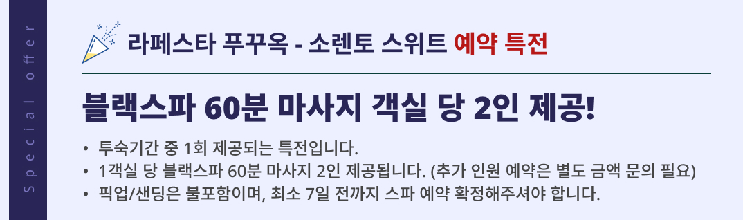 ¤ýÀ¥»çÀÌÆ®ÀÇ È£ÅÚÁ¤º¸´Â È£ÅÚ¿¹¾àÀ» À§ÇÑ Âü°í ÀÚ·á·Î È£ÅÚ ³» ÀÚü º¯µ¿À̳ª ±âŸ »çÀ¯·Î ½ÇÁ¦¿Í Â÷À̰¡ ÀÖÀ» ¼ö ÀÖÀ¸¸ç, ¡¡ÀÌ¿¡ ´ëÇØ º£Æ®³²½ºÅ丮´Â Ã¥ÀÓÀ» ÁöÁö ¾ÊÀ½À» ¾çÁöÇϽñ⠹ٶø´Ï´Ù. ¤ý°´½Ç¹èÁ¤¿¡ µû¸¥ ¿äû»çÇ×(±Ý¿¬·ë, °íÃþ µî)Àº È£ÅÚ¿¡ Àü´ÞµÇ³ª, ½ÇÁ¦ ¿î¿µÇϴ ȣÅÚÀÇ »çÁ¤¿¡ µû¶ó °áÁ¤µÇ´Â »ç¾ÈÀ¸·Î ¡¡º£Æ®³²½ºÅ丮¿¡¼ º¸Àå ÇÒ ¼ö ÀÖ´Â »çÇ×ÀÌ ¾Æ´ÔÀ» ¾Ë·Áµå¸³´Ï´Ù. ¤ýÀüü Åõ¼÷°´¼ö°¡ ÃÖ´ë ¼ö¿ëÀοøÀ» ÃʰúÇØ¼´Â ¾È µÇ¸ç, ¸¸¾à ±ÔÁ¤À» ¾î±â¸é µµÂø ½Ã ¡¡¼÷¹ÚÀ» °ÅÀý´çÇϰųª Ãß°¡¿ä±ÝÀ» ³»¾ß ÇÒ ¼öµµ ÀÖ½À´Ï´Ù. ¤ýÃë¼Ò¸¶°¨ÀÏ »êÁ¤Àº Åä¿äÀÏ, ÀÏ¿äÀÏ, °øÈÞÀÏÀ» Á¦¿ÜÇϰí, °æ¿ì¿¡ µû¶ó º°µµÀÇ Ãë¼Ò¸¶°¨ÀÏÀÌ ¡¡Àû¿ëµÉ ¼ö ÀÖ½À´Ï´Ù. (Çà»ç ȤÀº È£ÅÚ ÃøÀÇ Æ¯º°±ÔÁ¤À» µû¸¨´Ï´Ù)¿î¿µÀ¸·Î ¿©·¯ºÐÀÇ ¿©ÇàÀ» ÀÀ¿øÇÕ´Ï´Ù. |